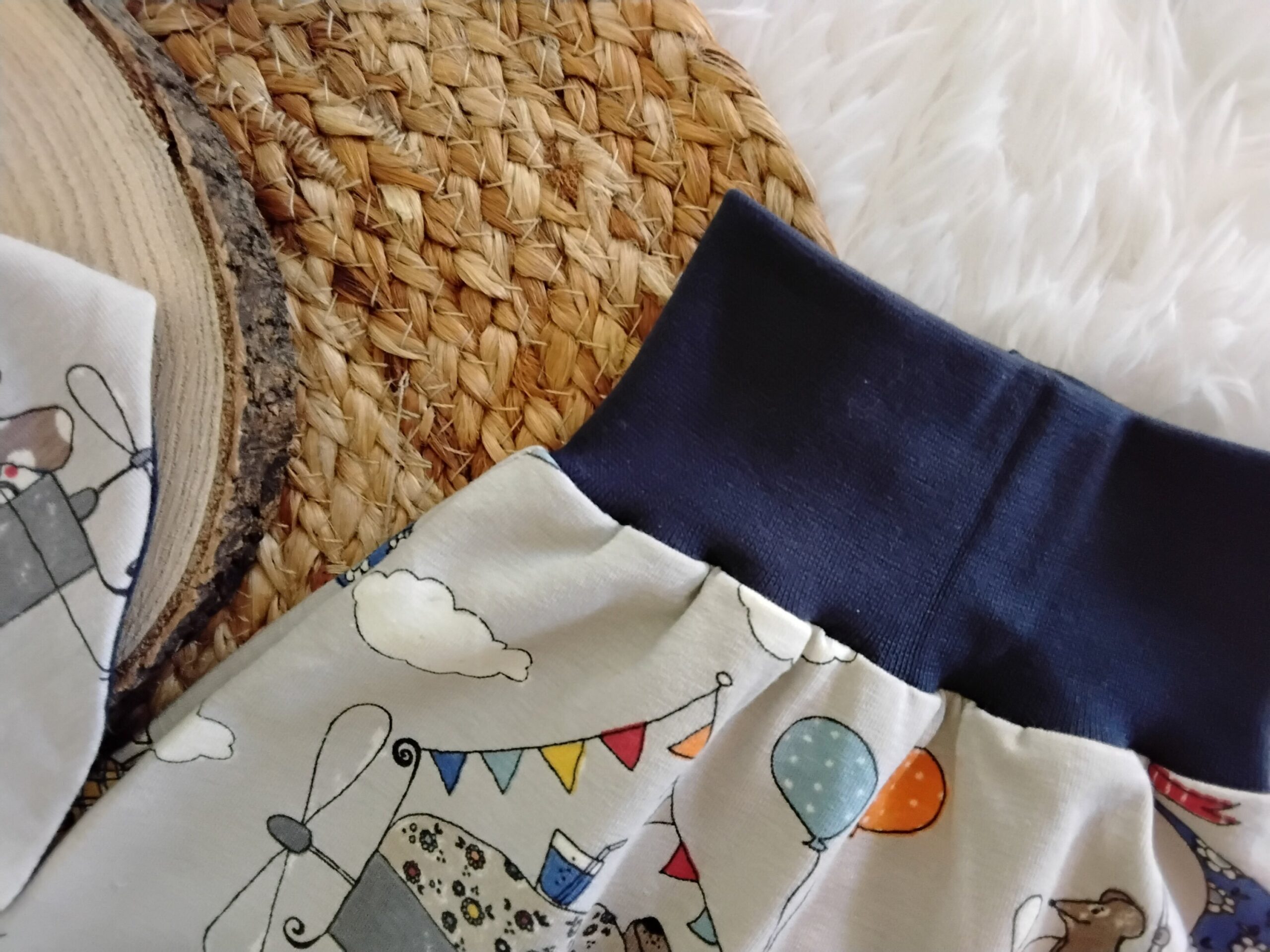 Alle beiden Teile sind aus Jerseystoff genäht. Dieser besteht zu 95% aus Baumwolle und zu 5% Elasthan.