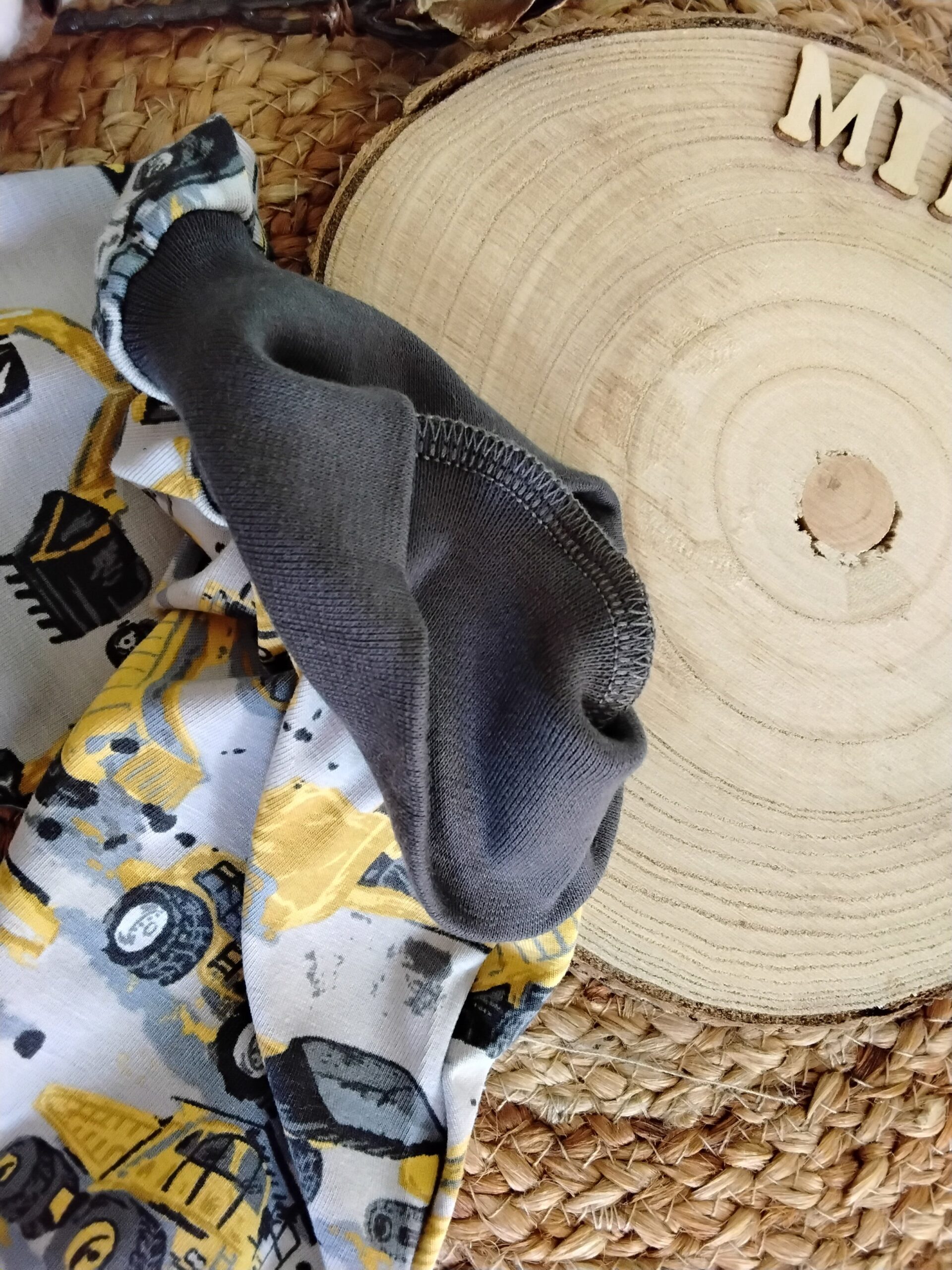 Alle beiden Teile sind aus Jerseystoff genäht. Dieser besteht zu 95% aus Baumwolle und zu 5% Elasthan.
