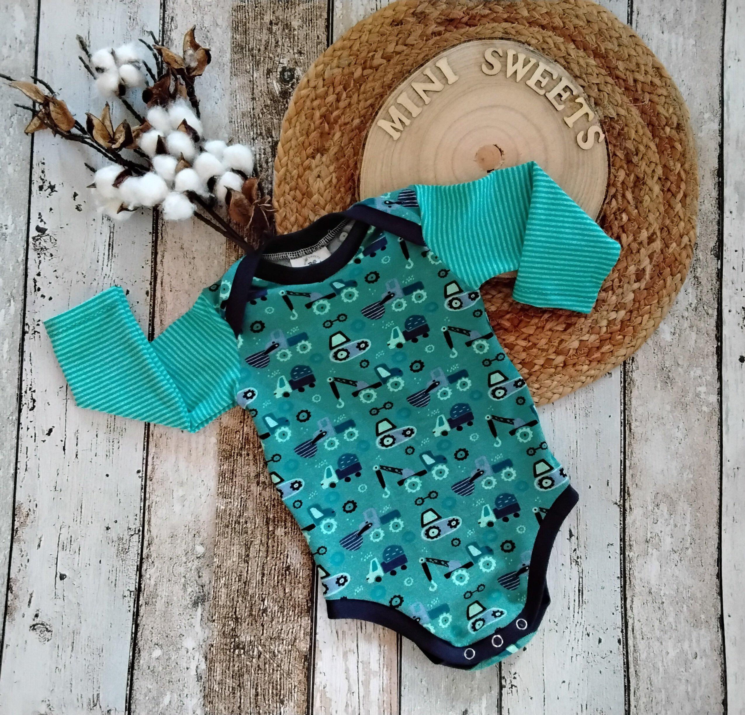 Süßer Body aus Jerseystoff und Druckknöpfen aus Metall. Der Body hat einen amerikanischen Halsausschnitt, welcher ein leichtes an und ausziehen ermöglicht.Der Stoff besteht zu 95% aus Baumwolle und zu 5% Elasthan.