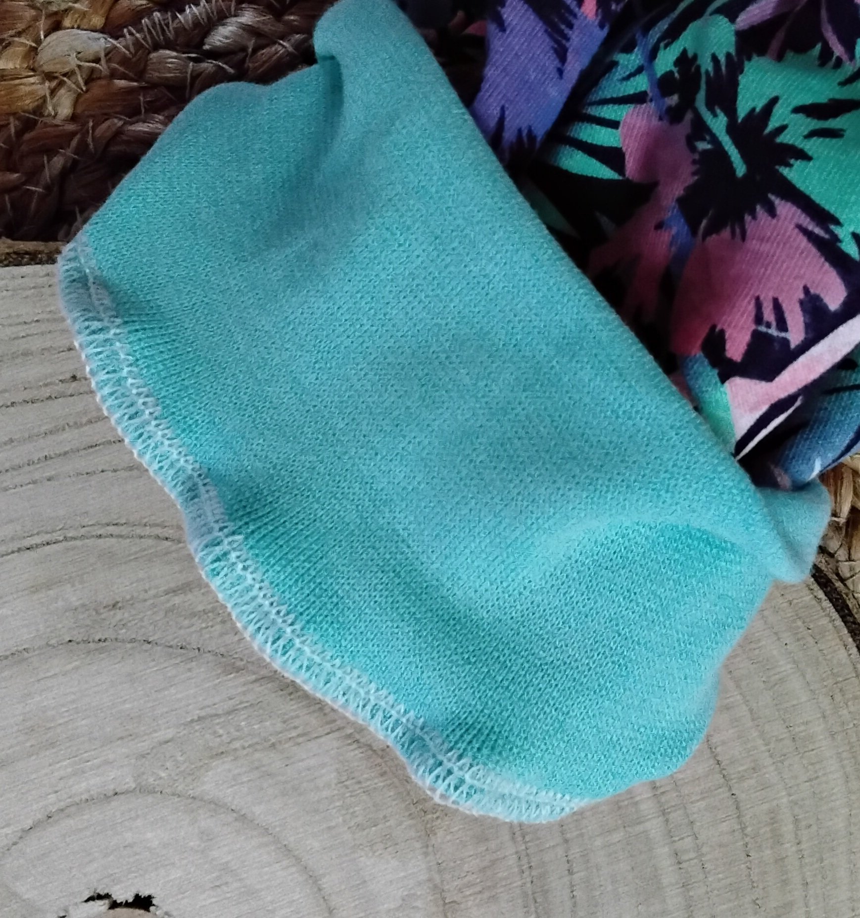 Die Hos ist aus Jerseystoff genäht. Dieser besteht zu 95% aus Baumwolle und zu 5% Elasthan.