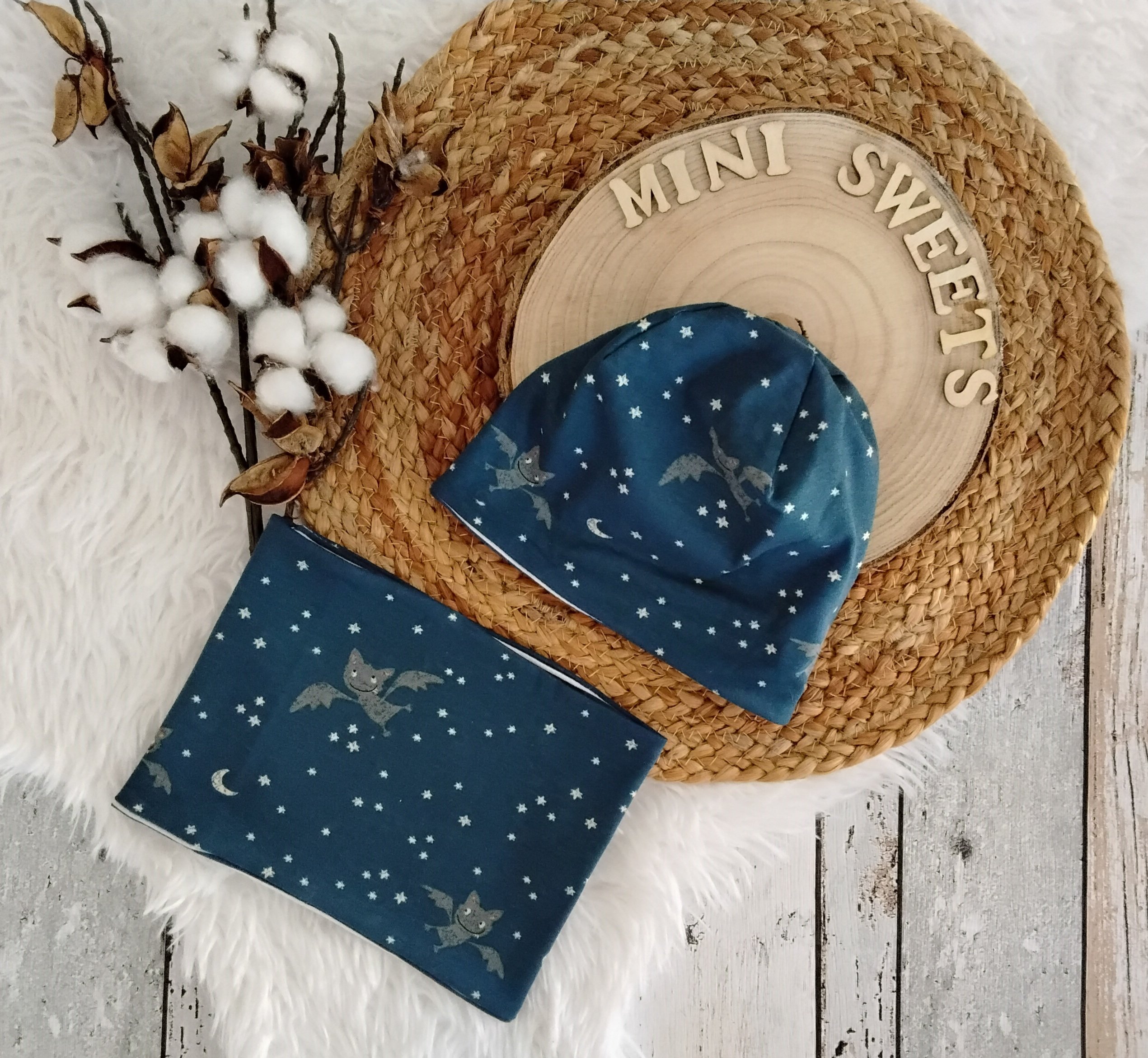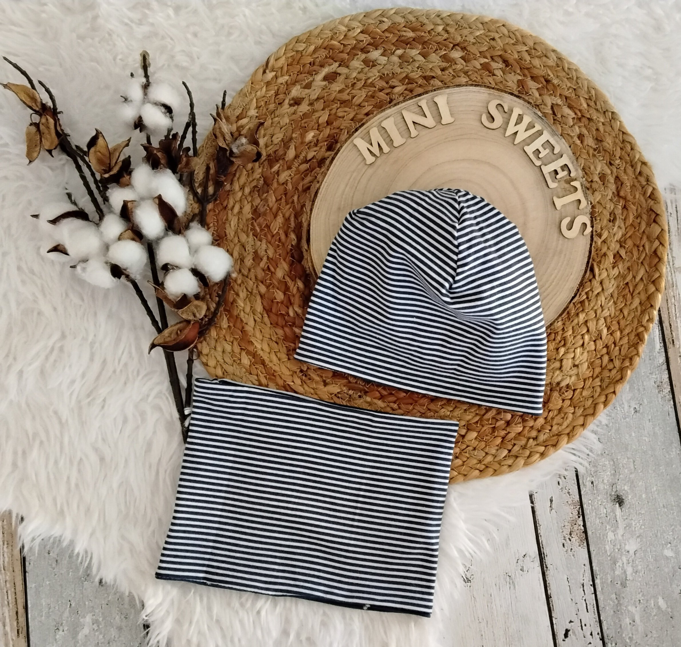 Niedliches Set aus Wendemütze und Wendeloop für den Frühling oder Herbst.