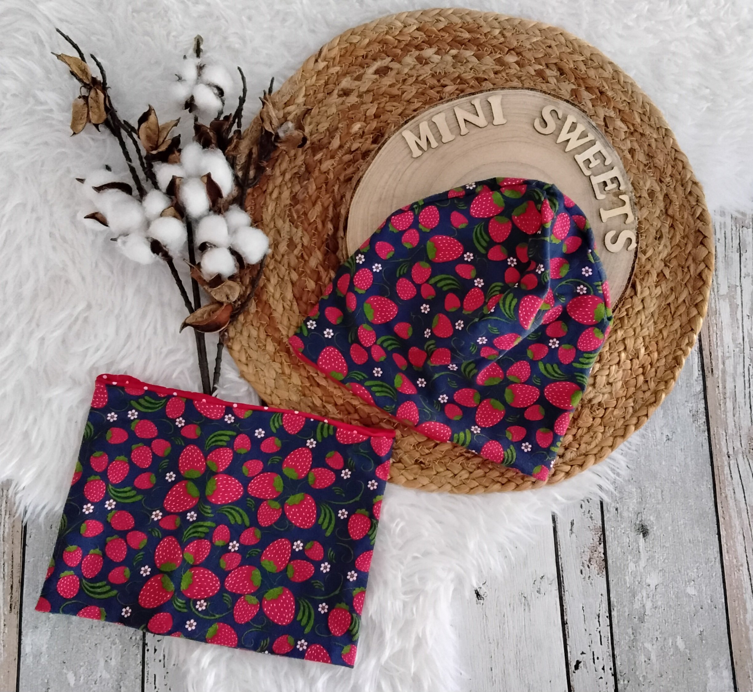 Wendebeanie mit Loop KU 44-45 Erdbeeren