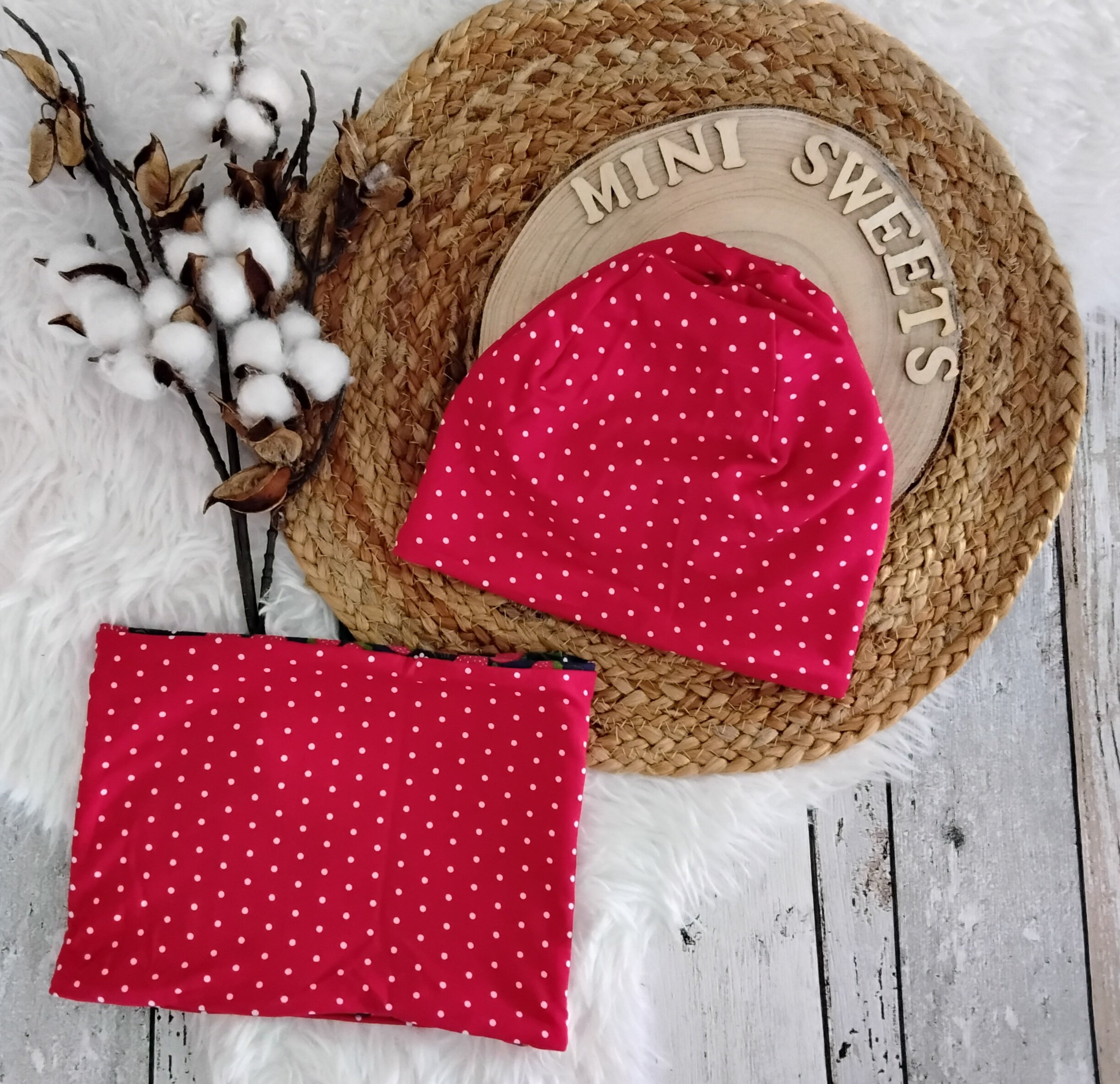 Niedliches Set aus Wendemütze und Wendeloop für den Frühling oder Herbst.