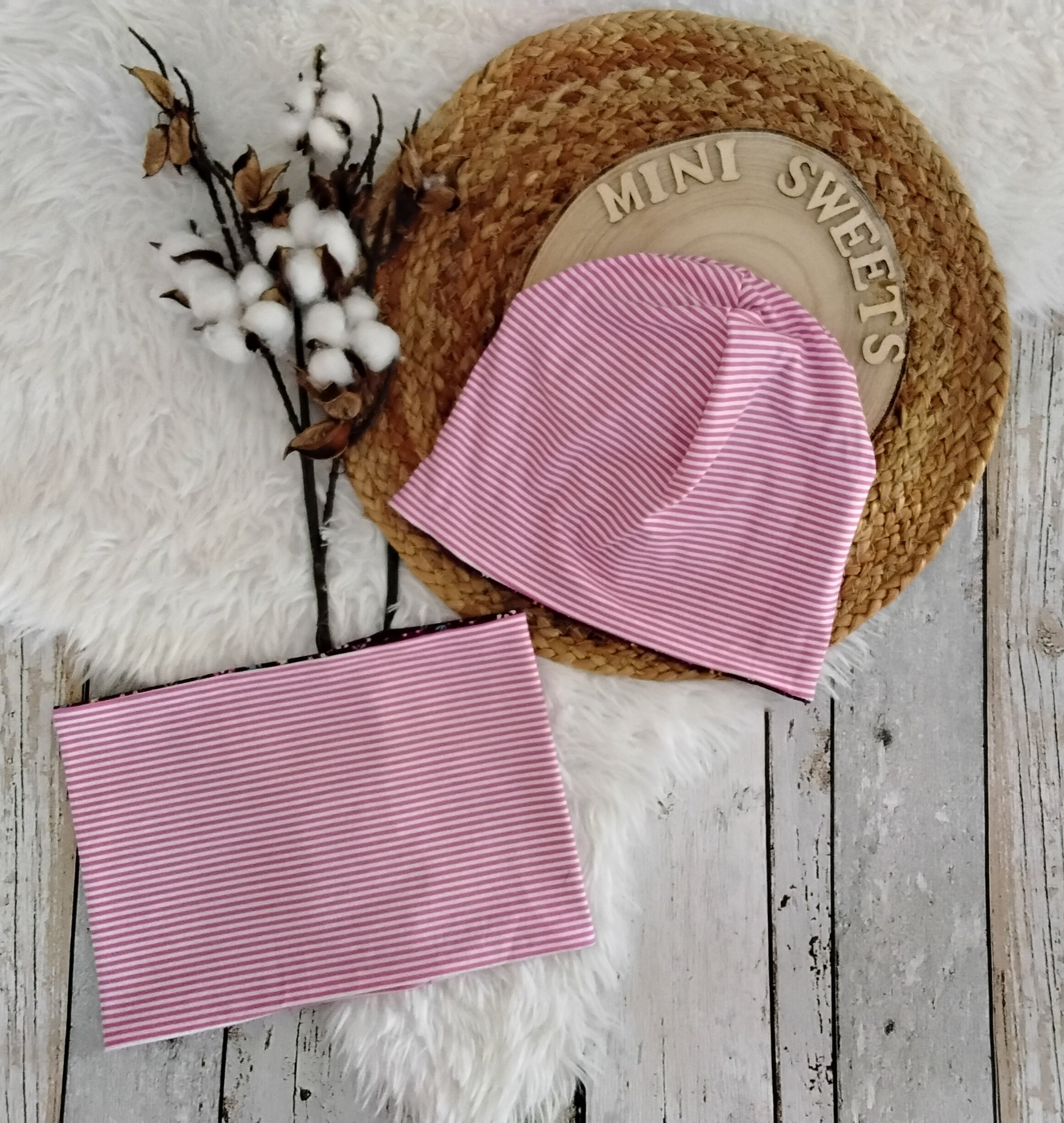 Niedliches Set aus Wendemütze und Wendeloop für den Frühling oder Herbst.